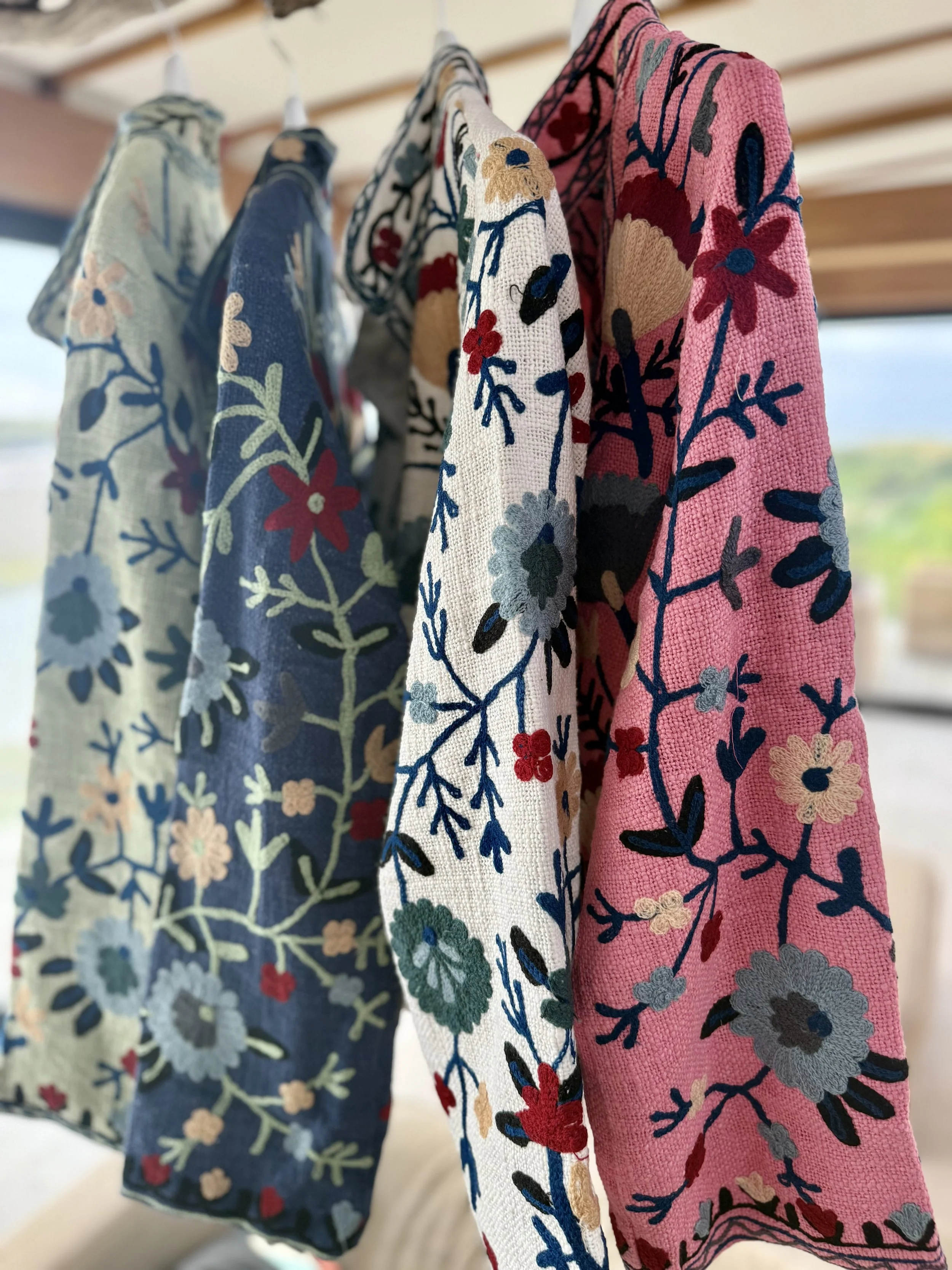 Categories: All Ladies Clothing Mens Clothing Accessories Jewellery Shop All | Ladies Clothing | Mens Clothing | Accessories | Jewellery | Jagger Jacket £95.00 Milly £68.00 Semi precious gem hoops £35.00 Kylie jacket £65.00 Gloria jacket £90.00 Eyelet jacket £120.00 Dylan Jacket £200.00 Justin Jacket £95.00 Suzy Jacket £80.00 Byron jumpsuit £85.00 Evie jumpsuit £68.00 Sold Out Daisy romper £45.00 Lola short wrap skirt £35.00 Leaf earrings £28.00 Leaf charm gem necklace £45.00 Edie sundress from £55.00 Blockprint scarf / pareo £20.00 Yoga Mat and Bag £45.00 Beaded keyring £20.00 Woven phone lanyard £25.00 Leila £95.00 Leni £65.00 Zoe reversible blockprint jacket £70.00 Block print mens organic cotton shirts £50.00 Seraphine bag £35.00 Lilly small crossbody pouch £25.00 Blockprint weekender bag £50.00 Sold Out Lakshmi waistcoat £50.00 Hand tiedye cashmere pashmina £40.00 Clover necklace £55.00 Ziggy bag £100.00 Ace of hearts jacket £120.00 Sold Out Ella £35.00 Isabel silk lounge set £80.00 Semi precious circle gem hoop £35.00 Elsie beach bag £55.00 Sold Out Pushka Gift Card from £20.00 Ring with stars £20.00 Green onyx earrings £30.00 Bangles with semi precious stones £25.00 Single semi precious stone rings £20.00 Signet ring with semi precious stones £25.00 Semi precious necklace with pearl charm £35.00 Half moon semi precious stud earrings £25.00 Gold plated and semi precious bracelets £20.00 Garnet and charm long necklace £50.00 Lowri green onyx heart necklace £35.00 Kitty £60.00 Gracie Skirt £50.00 Bella top £20.00 Lola £55.00 Long heritage silk kimono £70.00 Joni £80.00 Heritage silk short kimono. £60.00 Sophie £65.00 Stevie £45.00 Elin £65.00 Dolly shirt £35.00 Eva block-print waistcoat £50.00 Geo bomber jacket £120.00 Wide leg / Camisole Pyjamas £45.00 Shortie blockprint pyjamas £35.00 Short sleeve block print cotton shirts £40.00 Green onyx necklace with gold disc charm £45.00 Blue apatite necklace with turquoise charm. £45.00 Ruby Josite Elephant Necklace £55.00 Double beaded semi precious teardop earrings £35.00 Heart earrings with garnet £30.00 Magnolia Block Print Tablecloths £30.00 Kantha Day Shopper £40.00 Semi- precious gem bracelets £25.00 Tourmaline necklace £35.00 Aurora £130.00 Green onyx necklace with pendant £25.00 Dyed ruby necklace with pendant £25.00 Block print wash bags £35.00 Onyx necklace with pendant £25.00 Turquoise necklace with amazonite pendant. £25.00 Long Blockprint Pyjamas £40.00